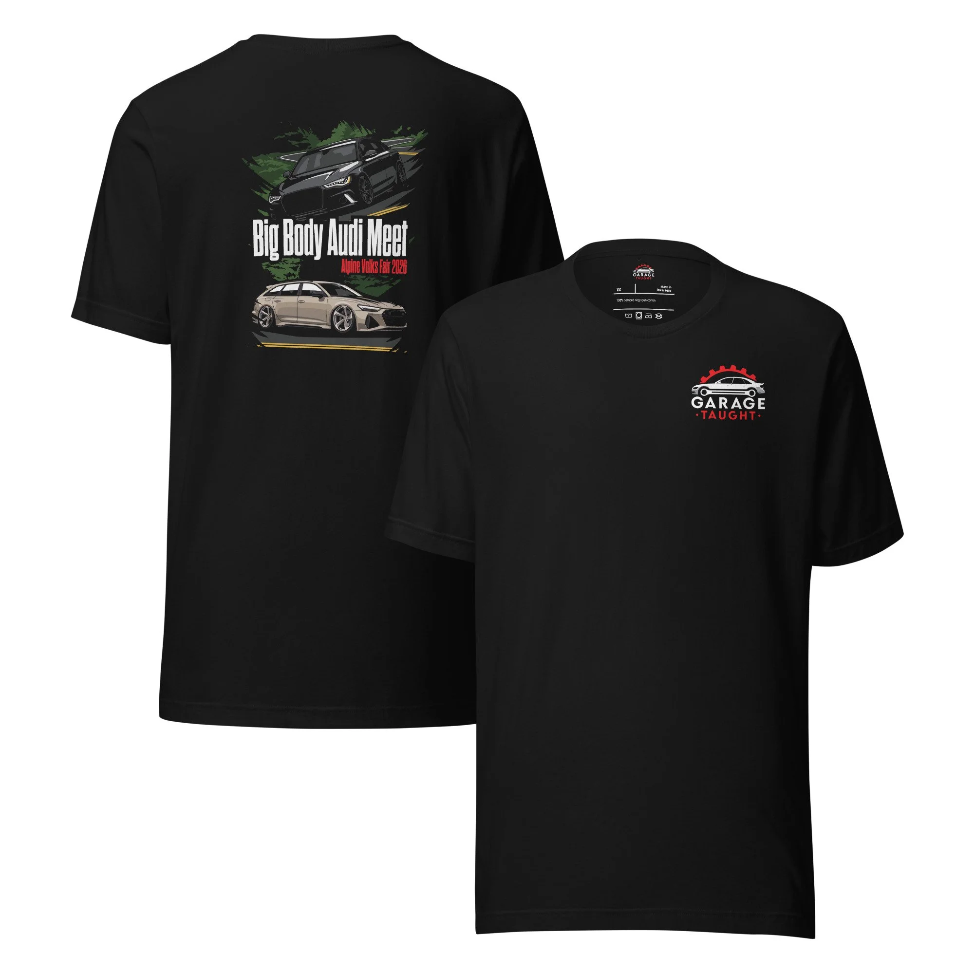 Garage Gear › AVF 2026 - Big Body Audi Meet Official Shirt Image 1 of 9 Image 2 of 9 Image 3 of 9 Image 4 of 9 Image 5 of 9 Image 6 of 9 Image 7 of 9 Image 8 of 9 Image 9 of 9 AVF 2026 - Big Body Audi Meet Official Shirt from $25.00 Attending Alpine Volks Fair Invitational this year? Join us at the 4th Annual Big Body Audi Pre-Meet, hosted by yours truly. To mark the occasion, we’re releasing our first official event T-shirt. Designed for those who appreciate the presence of the big body Audi platforms. Quantities are limited, so be sure to secure yours ahead of the event. Ships within 8–10 days of purchase. Shout out to Riga Designs for the amazing artwork! • 100% combed and ring-spun cotton (Heather colors contain polyester) • Fabric weight: 4.2 oz/yd² (142 g/m²) • Pre-shrunk fabric • Side-seamed construction • Shoulder-to-shoulder taping • Blank product sourced from Guatemala, Nicaragua, Mexico, Honduras, or the US Size: Select Size XS S M L XL 2XL 3XL 4XL 5XL Add To Cart Added! Attending Alpine Volks Fair Invitational this year? Join us at the 4th Annual Big Body Audi Pre-Meet, hosted by yours truly. To mark the occasion, we’re releasing our first official event T-shirt. Designed for those who appreciate the presence of the big body Audi platforms. Quantities are limited, so be sure to secure yours ahead of the event. Ships within 8–10 days of purchase. Shout out to Riga Designs for the amazing artwork! • 100% combed and ring-spun cotton (Heather colors contain polyester) • Fabric weight: 4.2 oz/yd² (142 g/m²) • Pre-shrunk fabric • Side-seamed construction • Shoulder-to-shoulder taping • Blank product sourced from Guatemala, Nicaragua, Mexico, Honduras, or the US Whiskey Glass $13.75 Add Added!